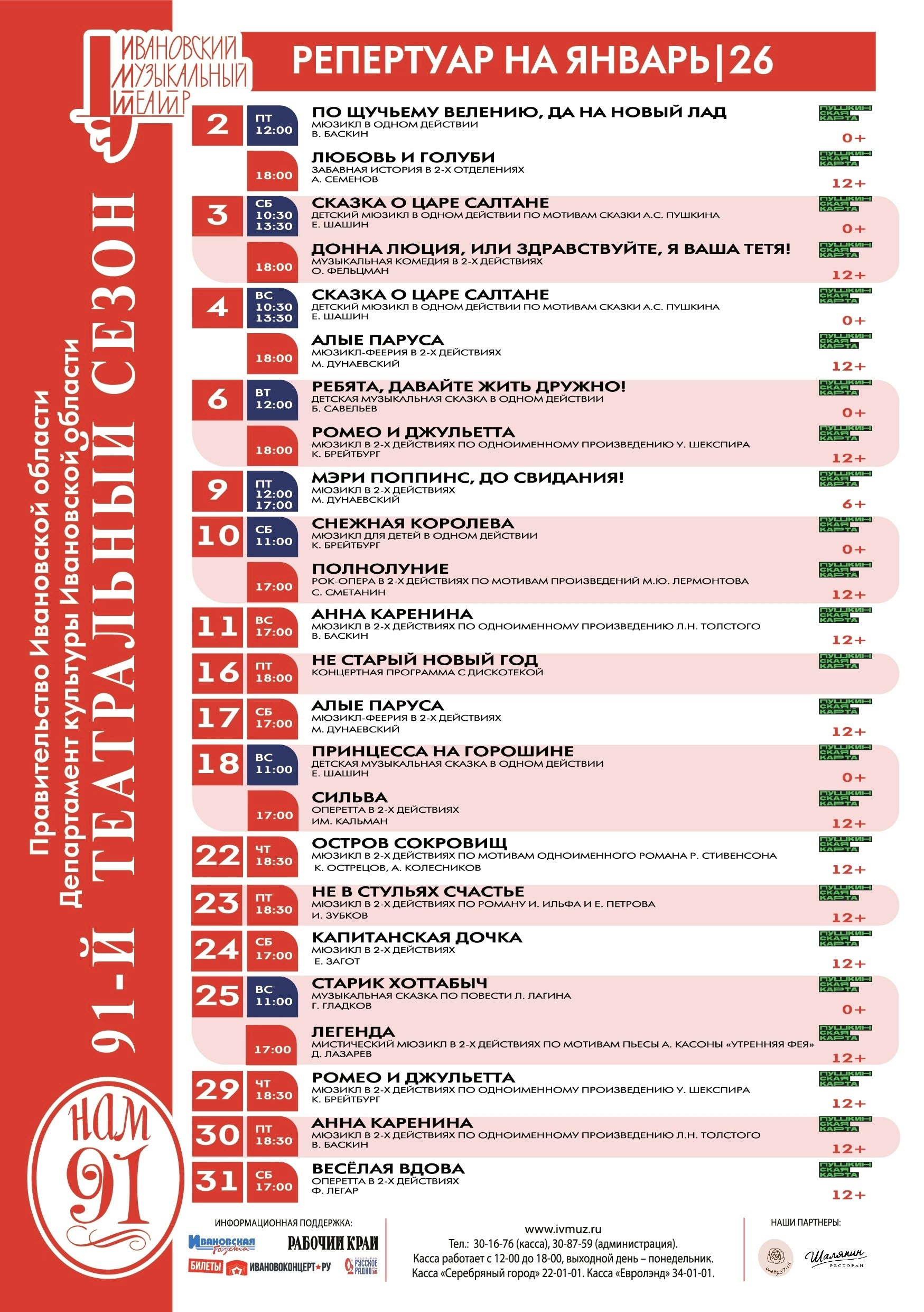 Репертуар Ивановского музыкального театра на январь 2026г.