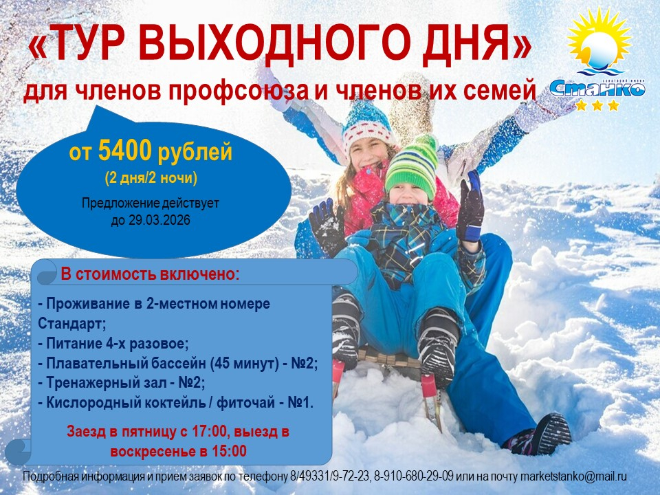 Для координационного совета организаций профсоюзов Лежневского района уже стало традицией организация туров выходного дня в профсоюзные здравницы Ивановской области. 6 и 13 февраля были организованы туры в санаторий имени Станко, который расположен на живописном берегу реки Волги. А участниками туров стали члены Профсоюзов и члены семей работников образования, здравоохранения и культуры.