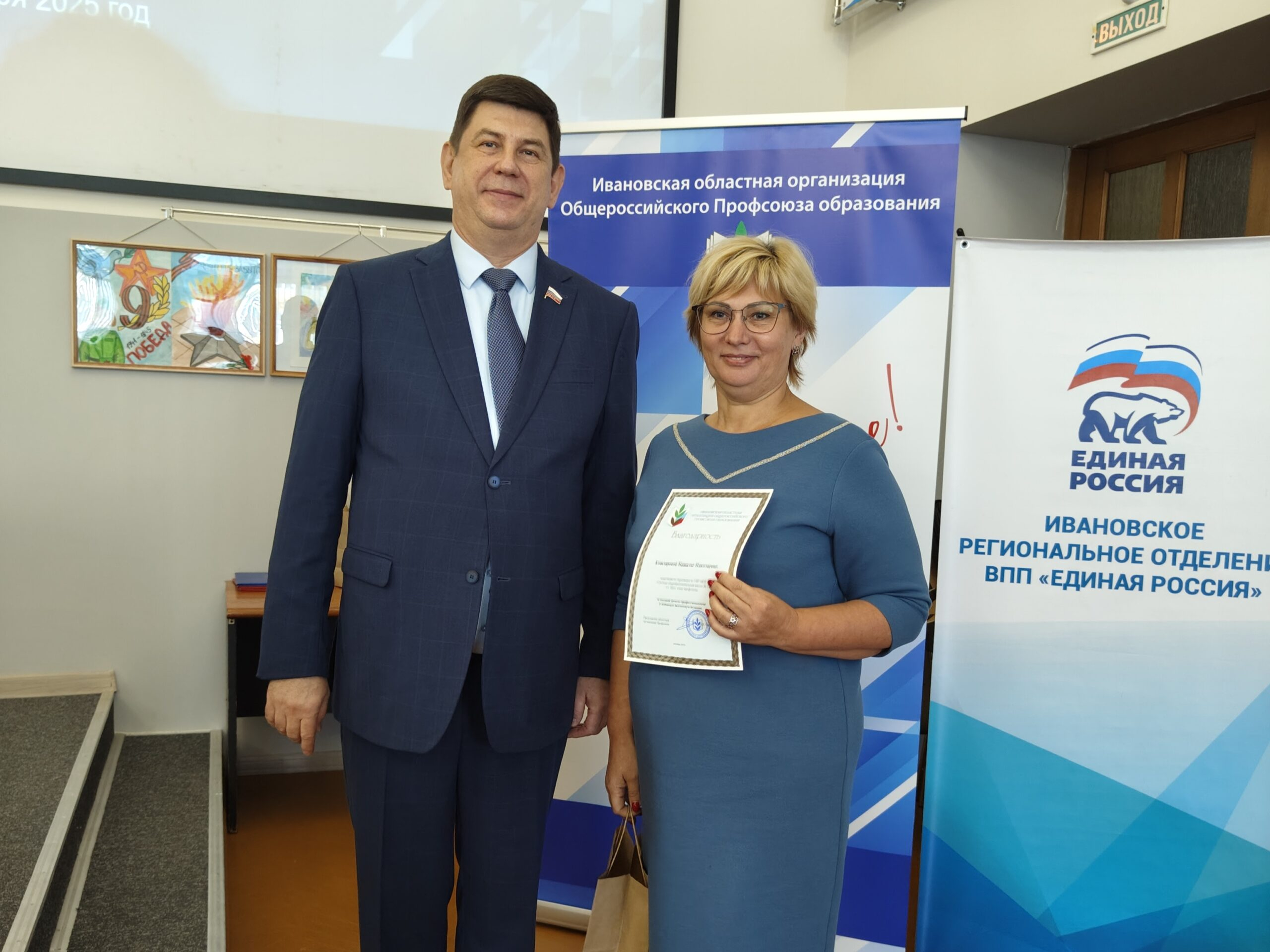 Членам Профсоюза объявлена Благодарность Ивановской областной организации Общероссийского Профсоюза образования «За высокий уровень профессионализма и активную жизненную позицию» и вручен памятный подарок:
