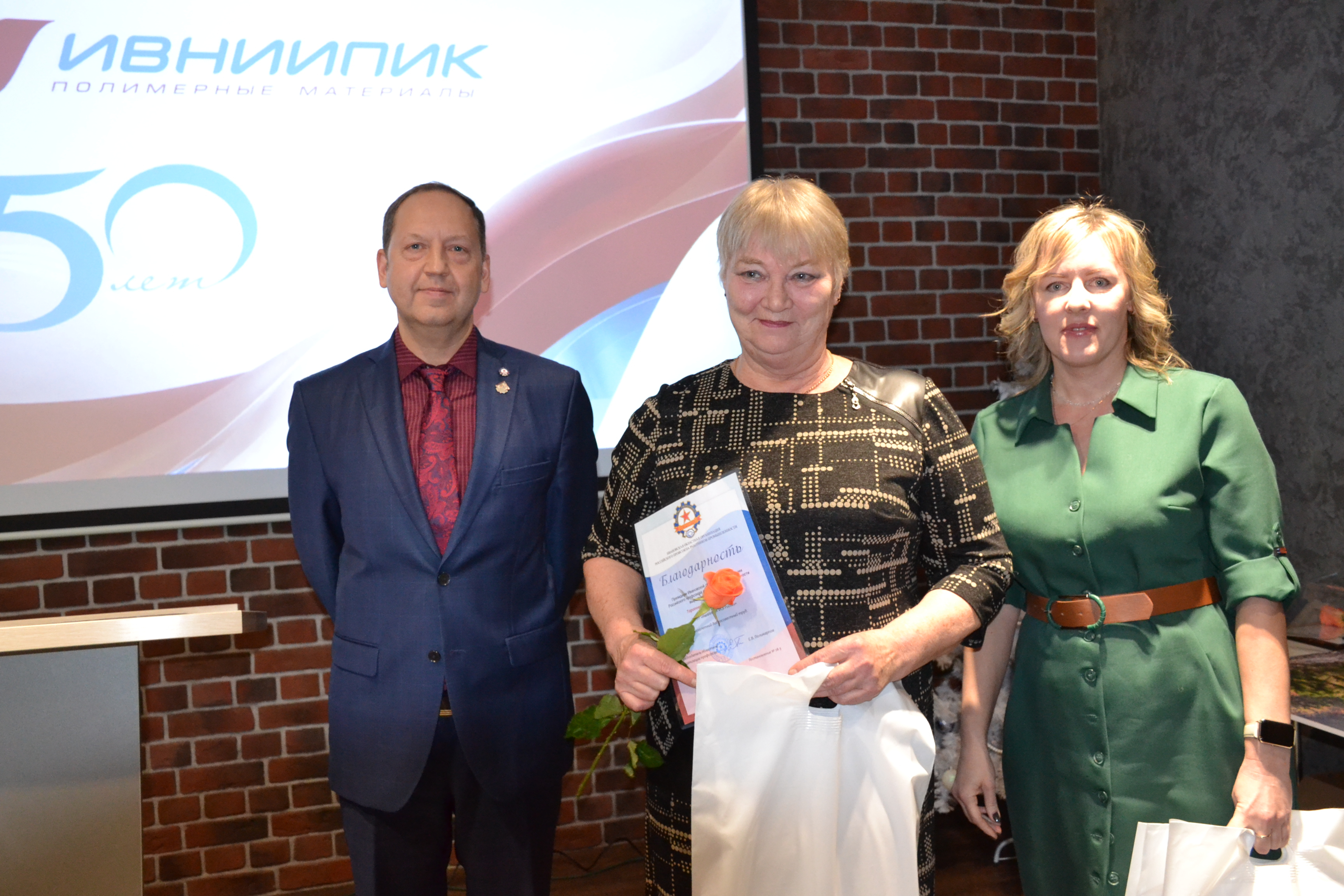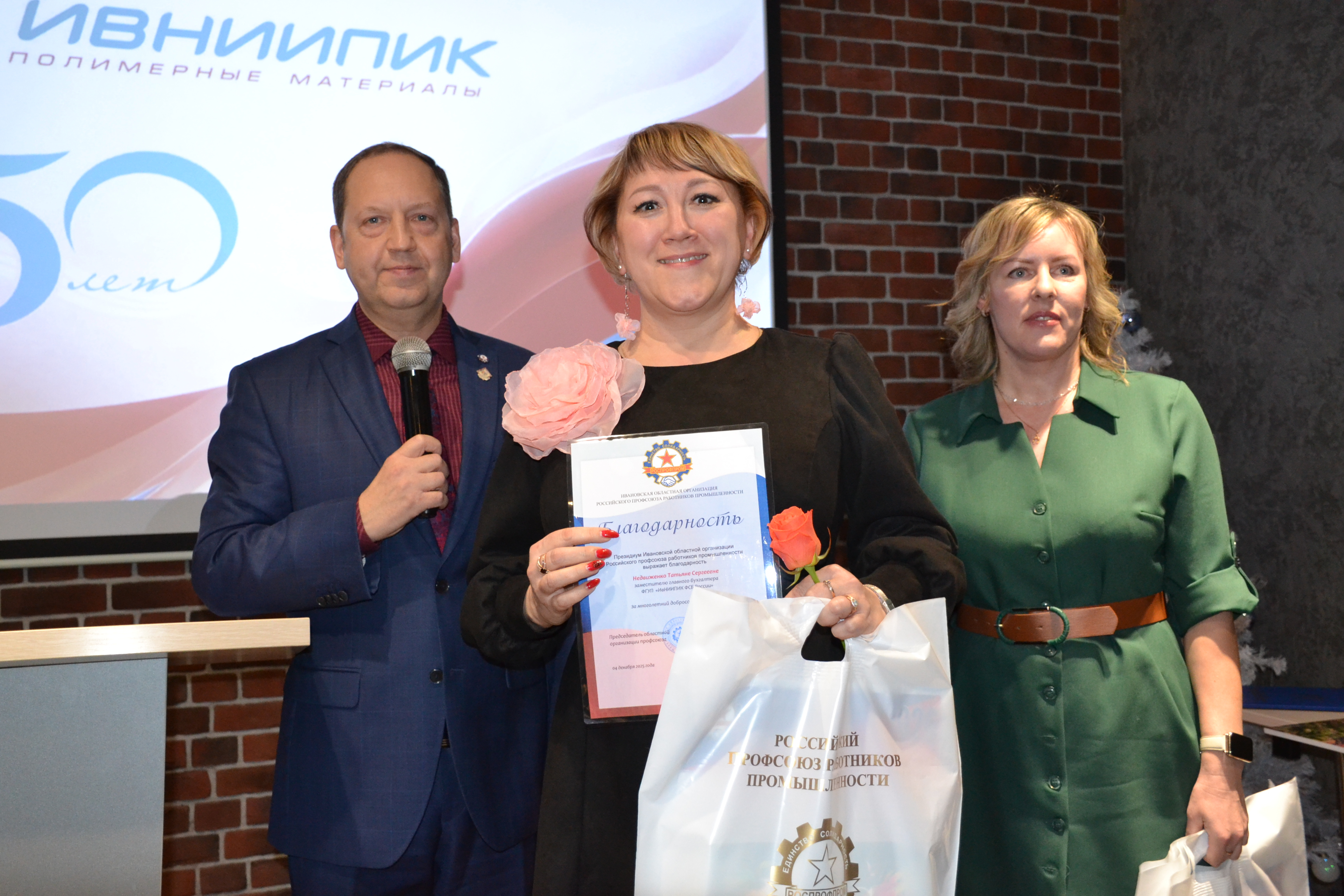 За многолетний добросовестный труд профсоюзными благодарностью и памятными подарками были награждены замглавного бухгалтера Татьяна Недвиженко, машинист резиносмесителя Алексей Сибирев и оператор котельной Татьяна Торопова.