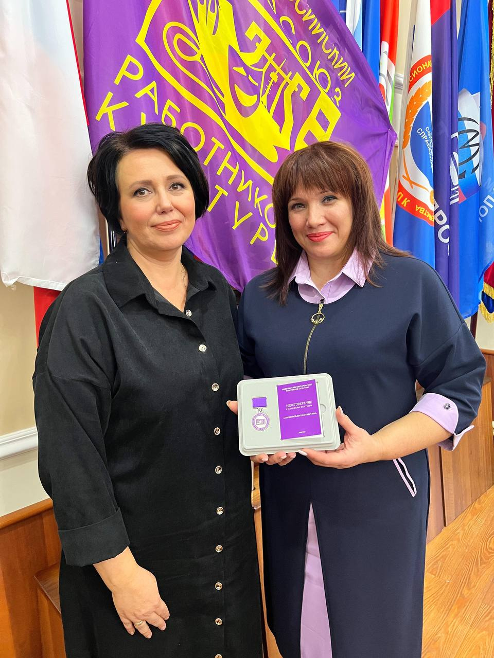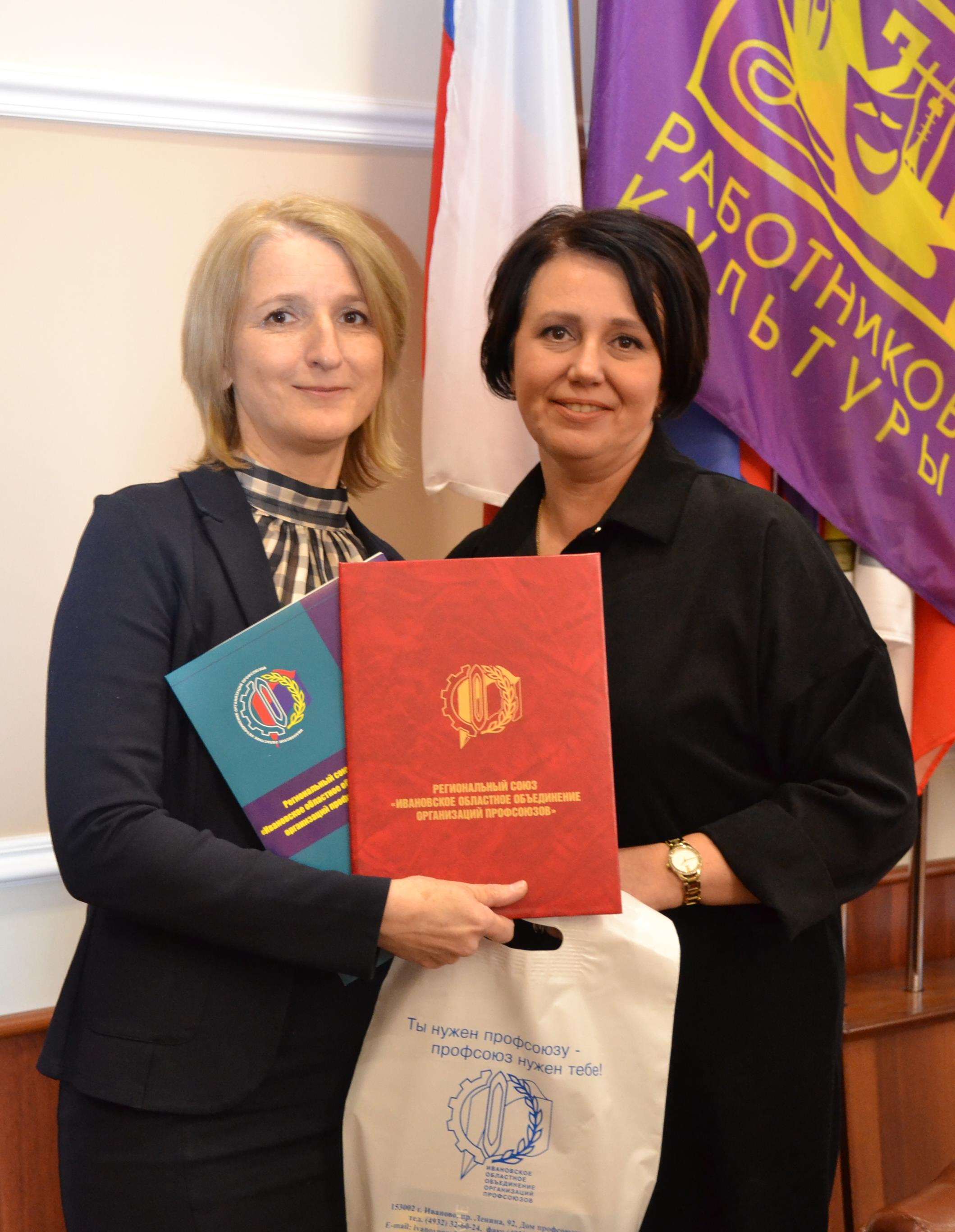 В ходе заседания директору Детской школы искусств г. Иваново Ольге Митрофановой был вручен нагрудный знак Общероссийского профсоюза работников культуры «За социальное партнерство».
