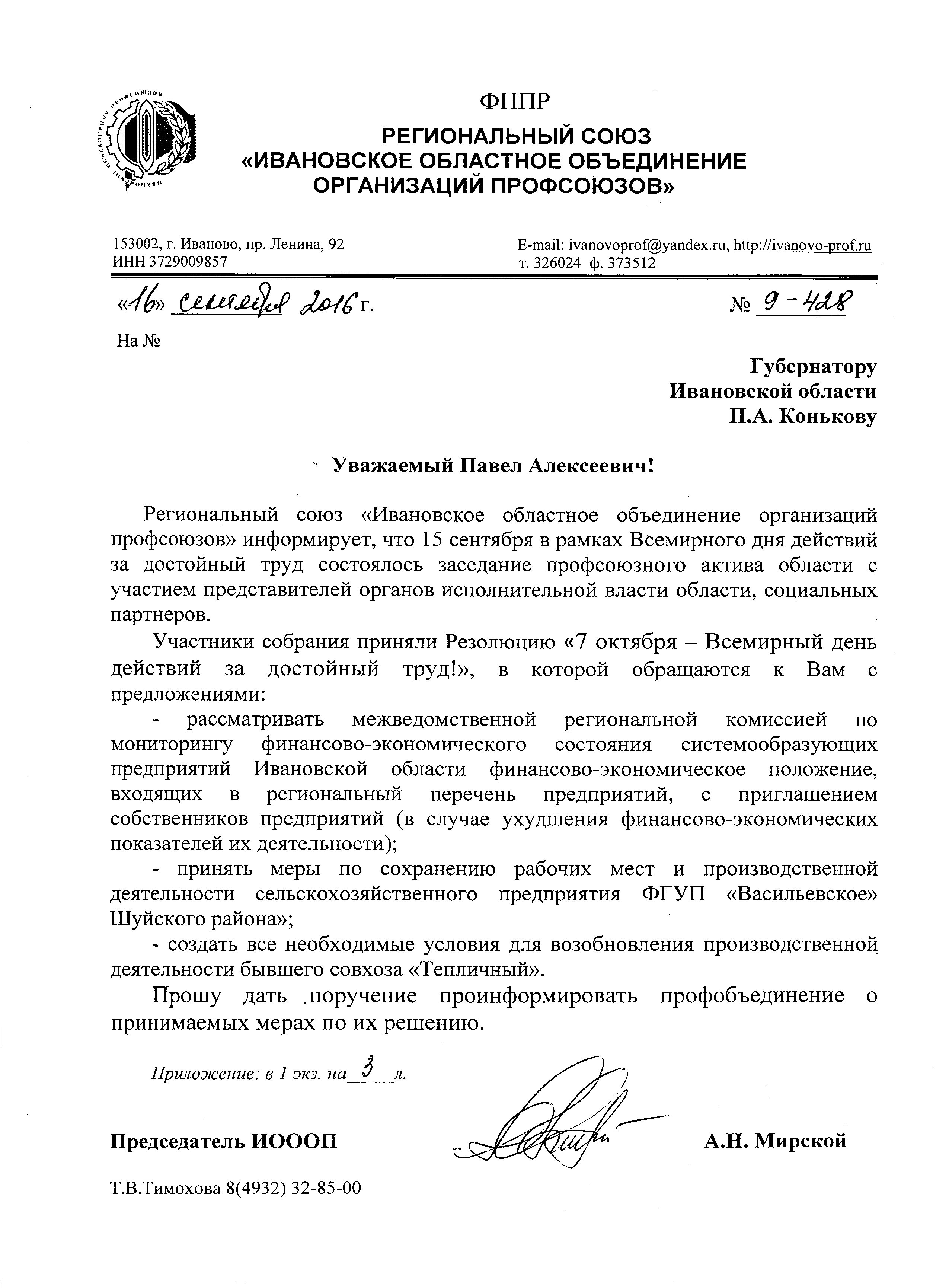 - Обращение к Губернатору Ивановской обл. П.А.Конькову