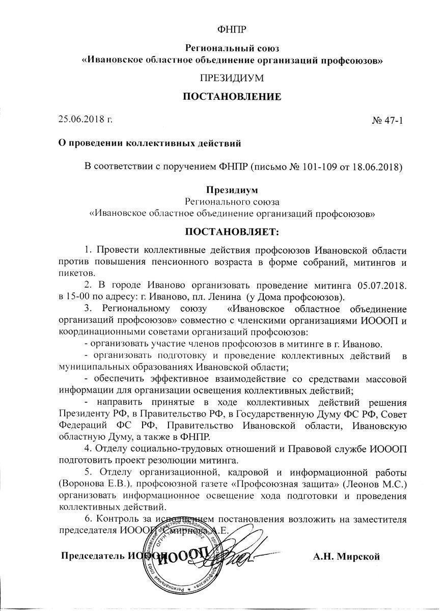Постановление Президиума ИОООП о проведении митинга 5 июля 2018г. читать: