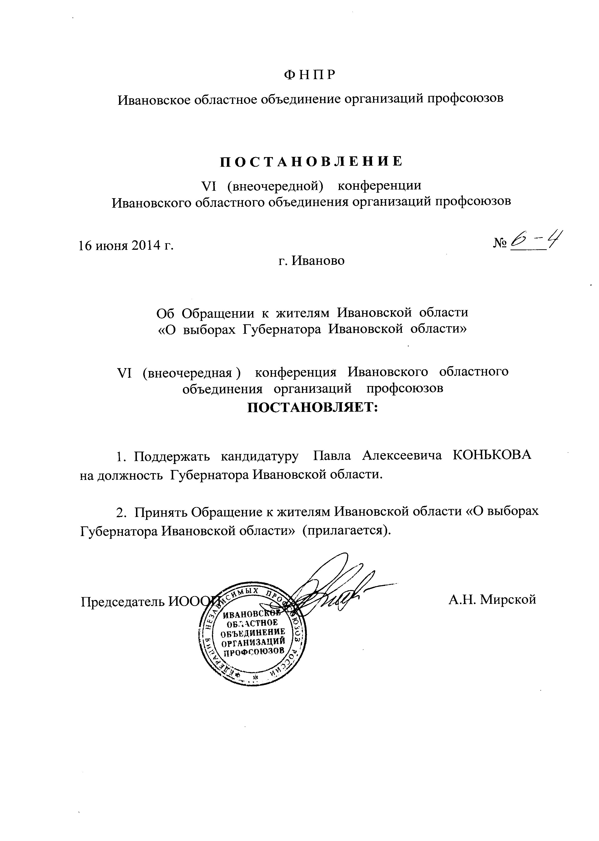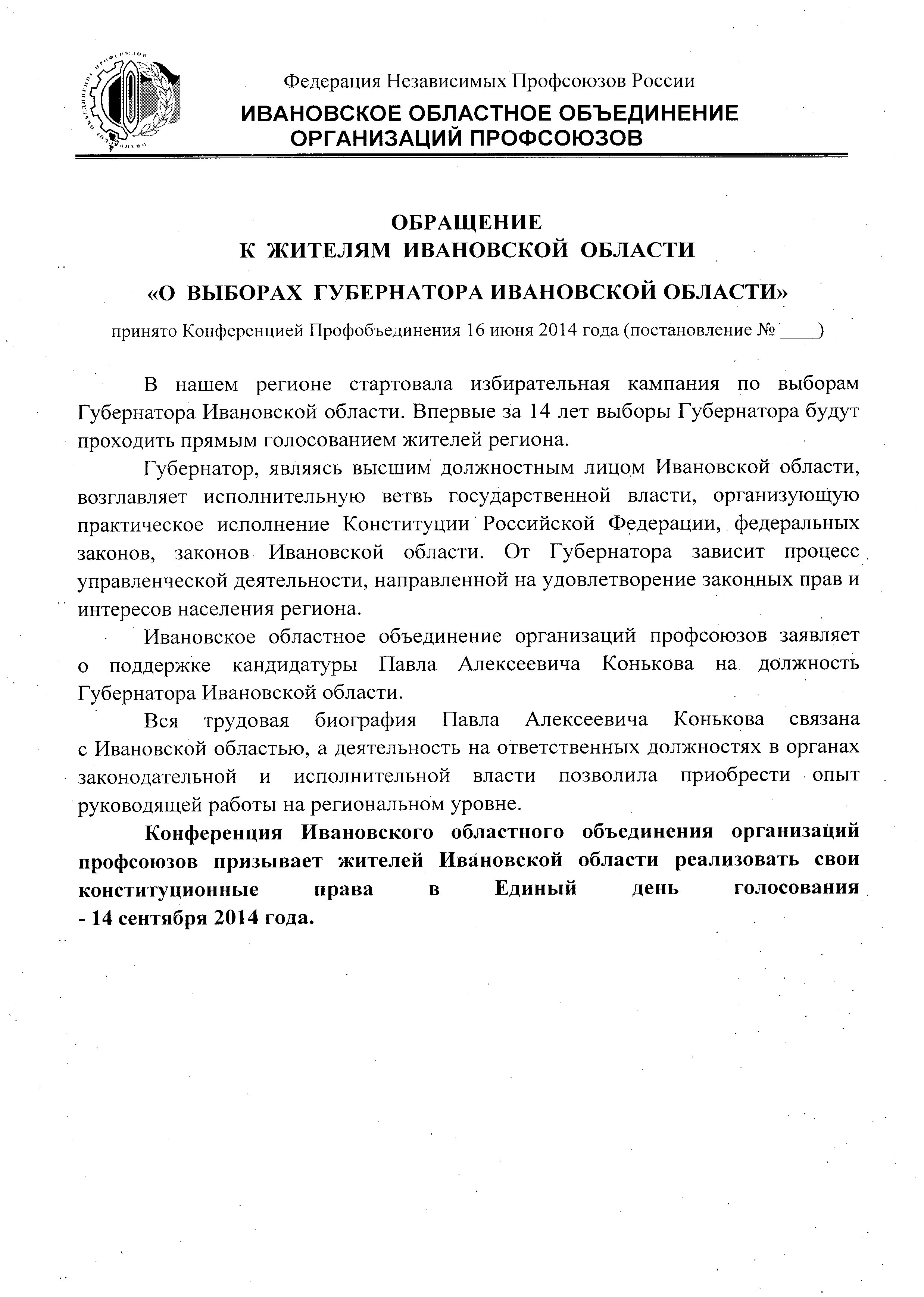 - Об Обращении к жителям Ивановской области "О выборах Губернатора Ивановской области"