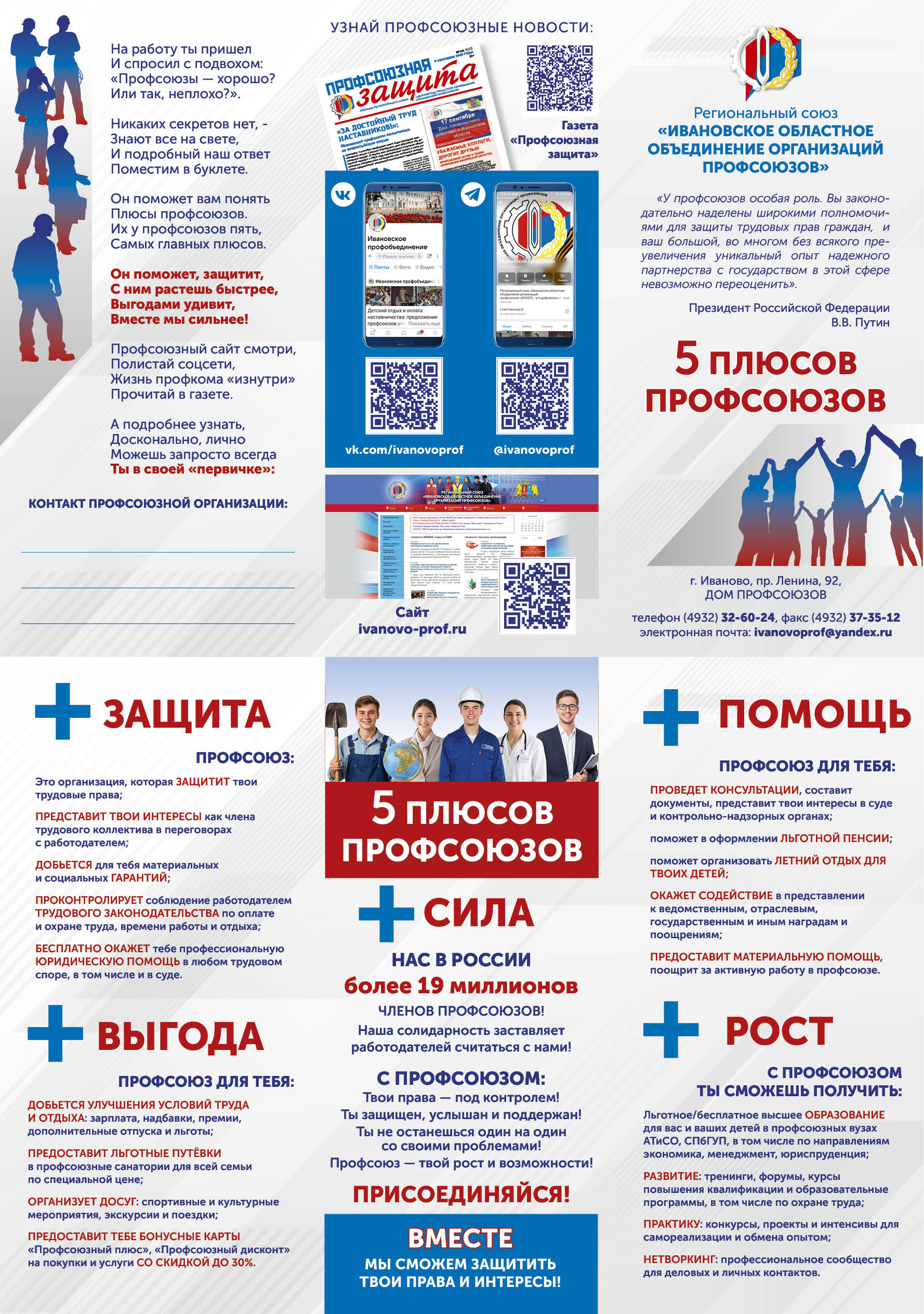 Лифлет "5 Плюсов профсоюзов"