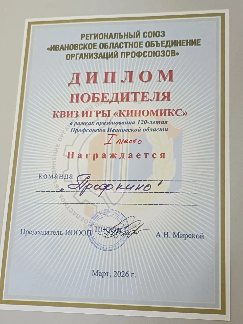 Кино - один из важнейших видов искусства, которое любят и смотрят люди разных поколений, как в нашей стране, так и в мире, потому на встрече свою авторскую программу квиз "КиноМикс" провели наши гости, юоные, активные члены профсоюза Шуйского центра социального обслуживания под руководством Ефремовой Татьяны Анатольевны.