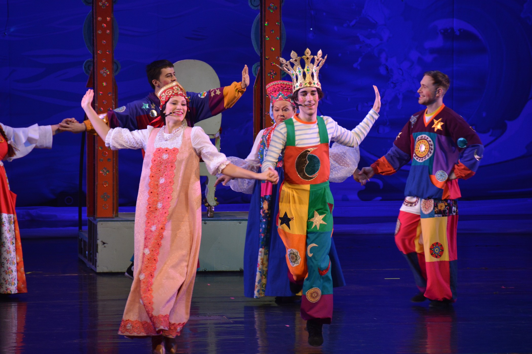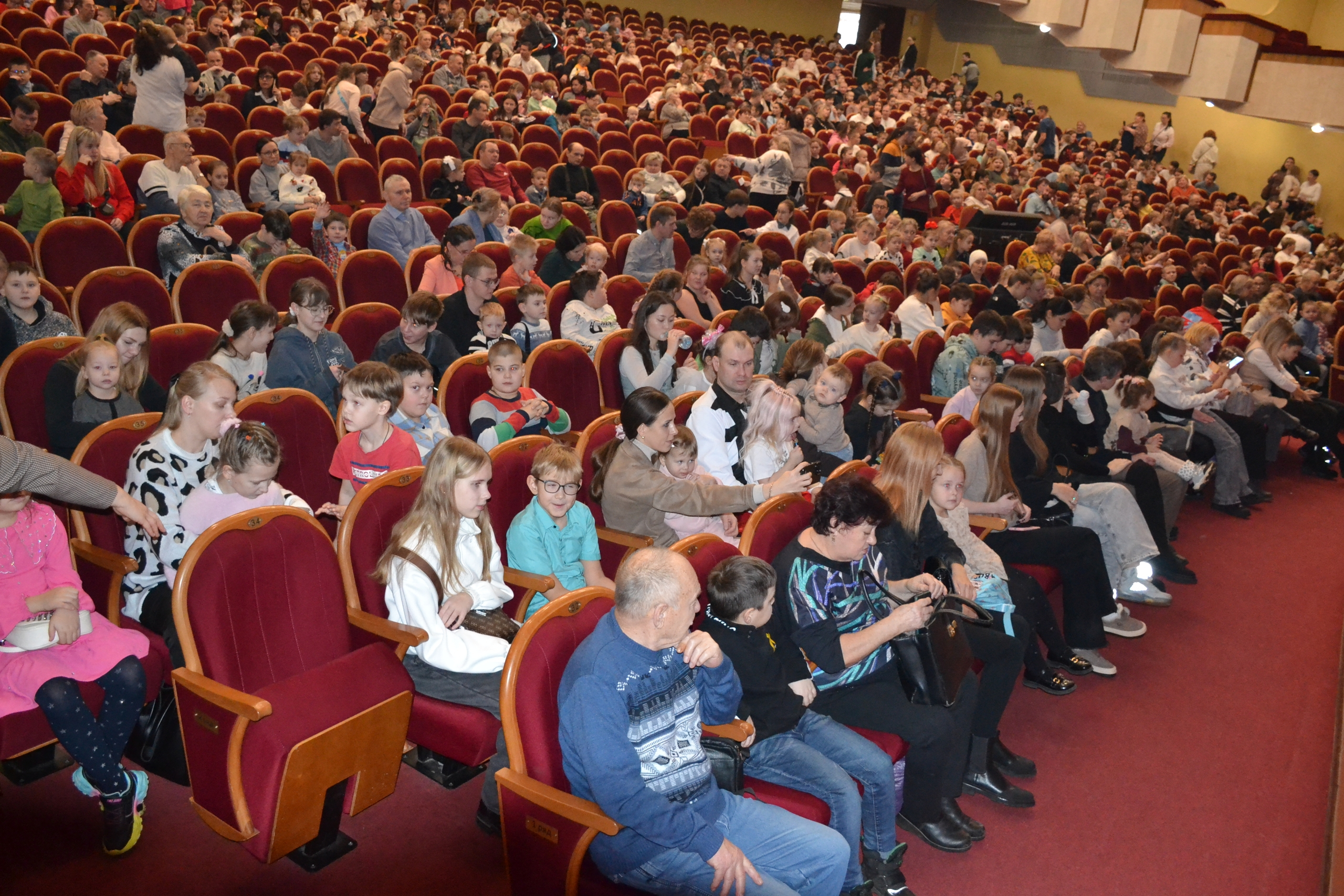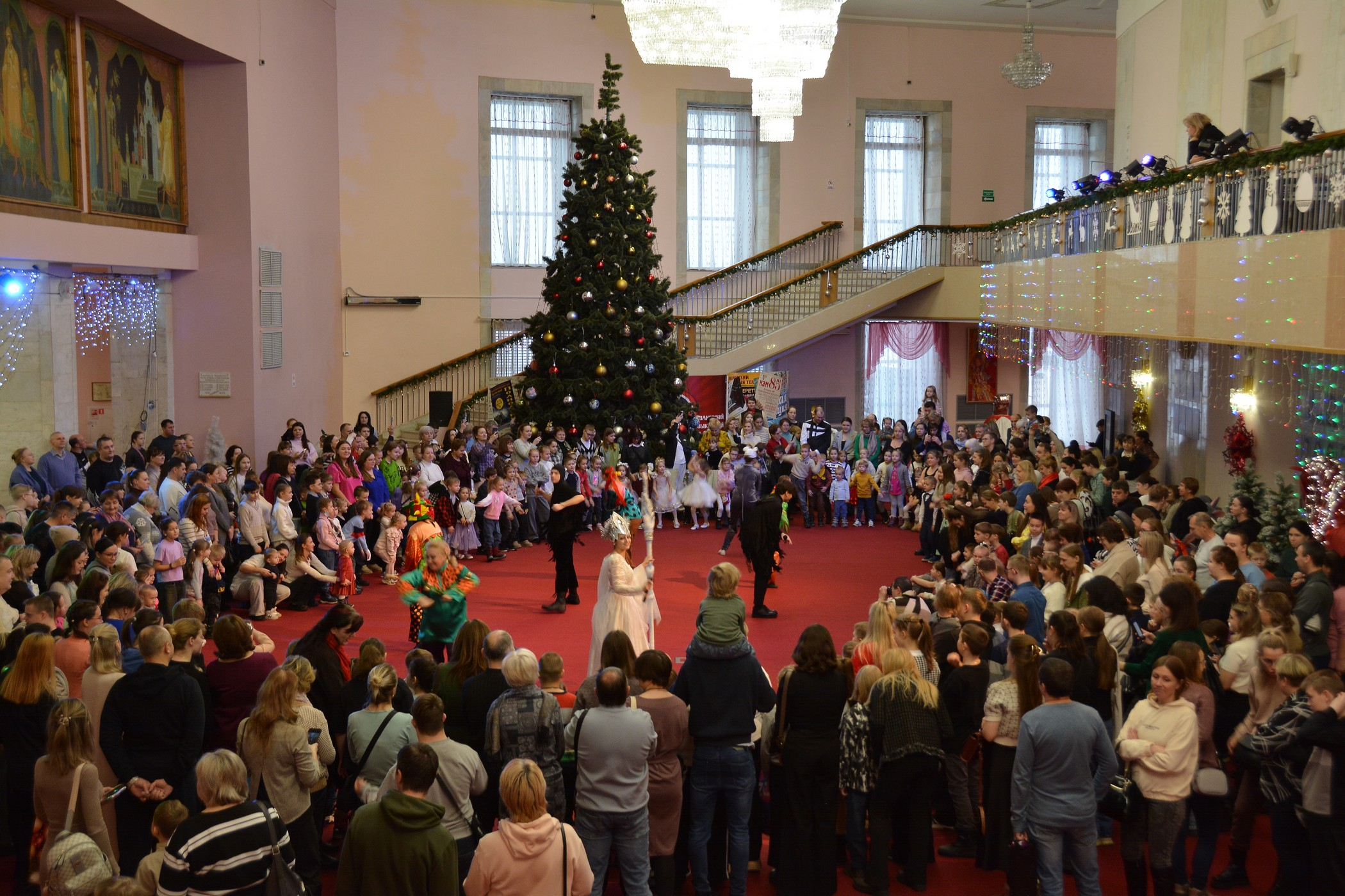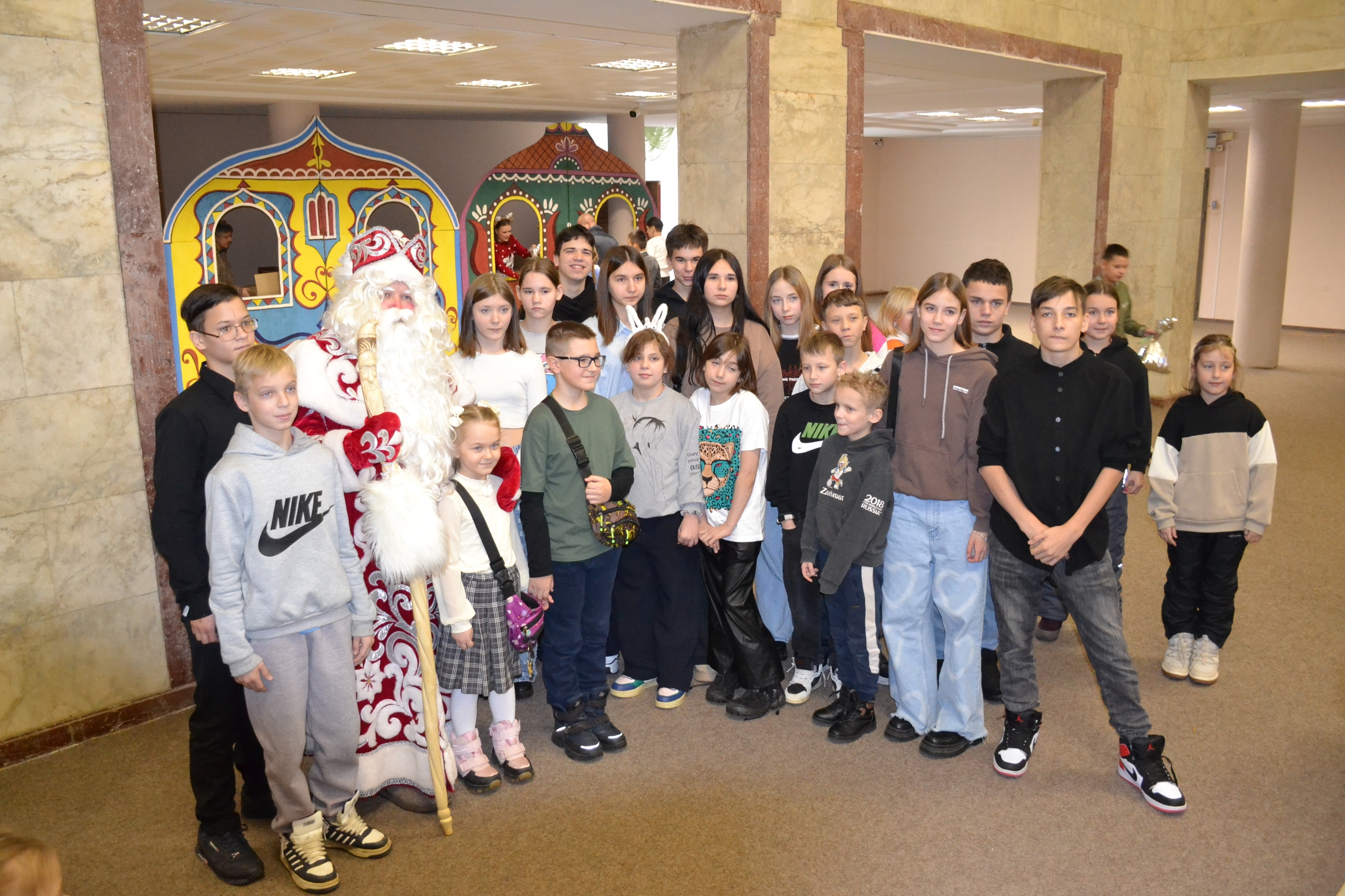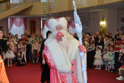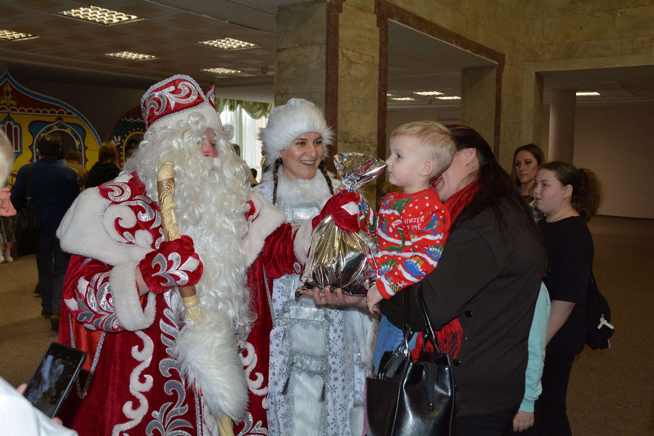В холле театра дети с радостью фотографировались у различных кукол и игрушек, затем дружно участвовали в представлении, где Дед Мороз со Снегурочкой с помощью других сказочных персонажей боролся со Королевой Льда, пели, танцевали, смеялись, а в финале помогли зажечь огни на новогодней ёлке.