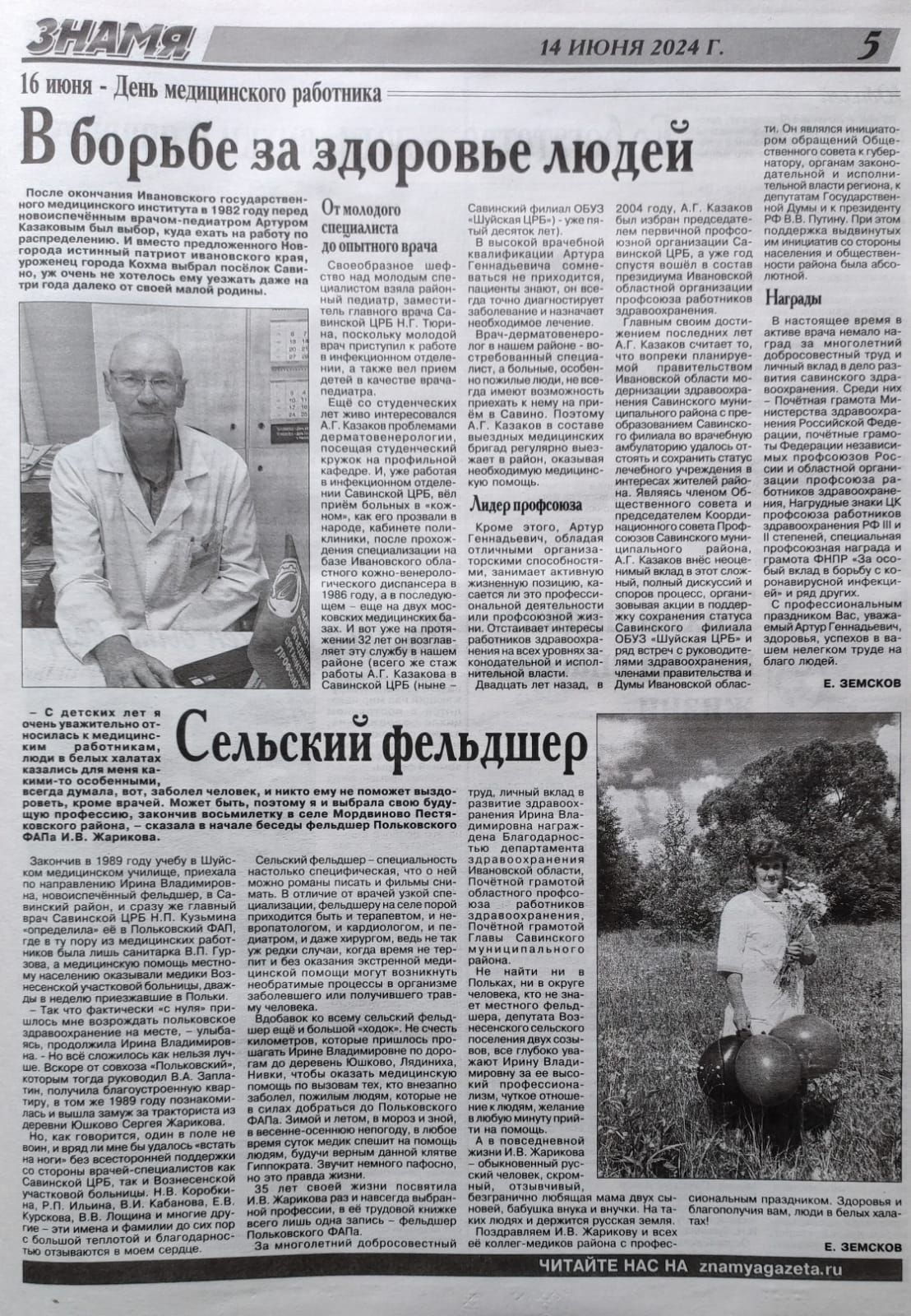 14 июня заместитель главы администрации Савинского муниципального района С.Н. Желобанова поздравила с профессиональным праздником медицинских работников Савинского филиала ОБУЗ "Шуйская ЦРБ".