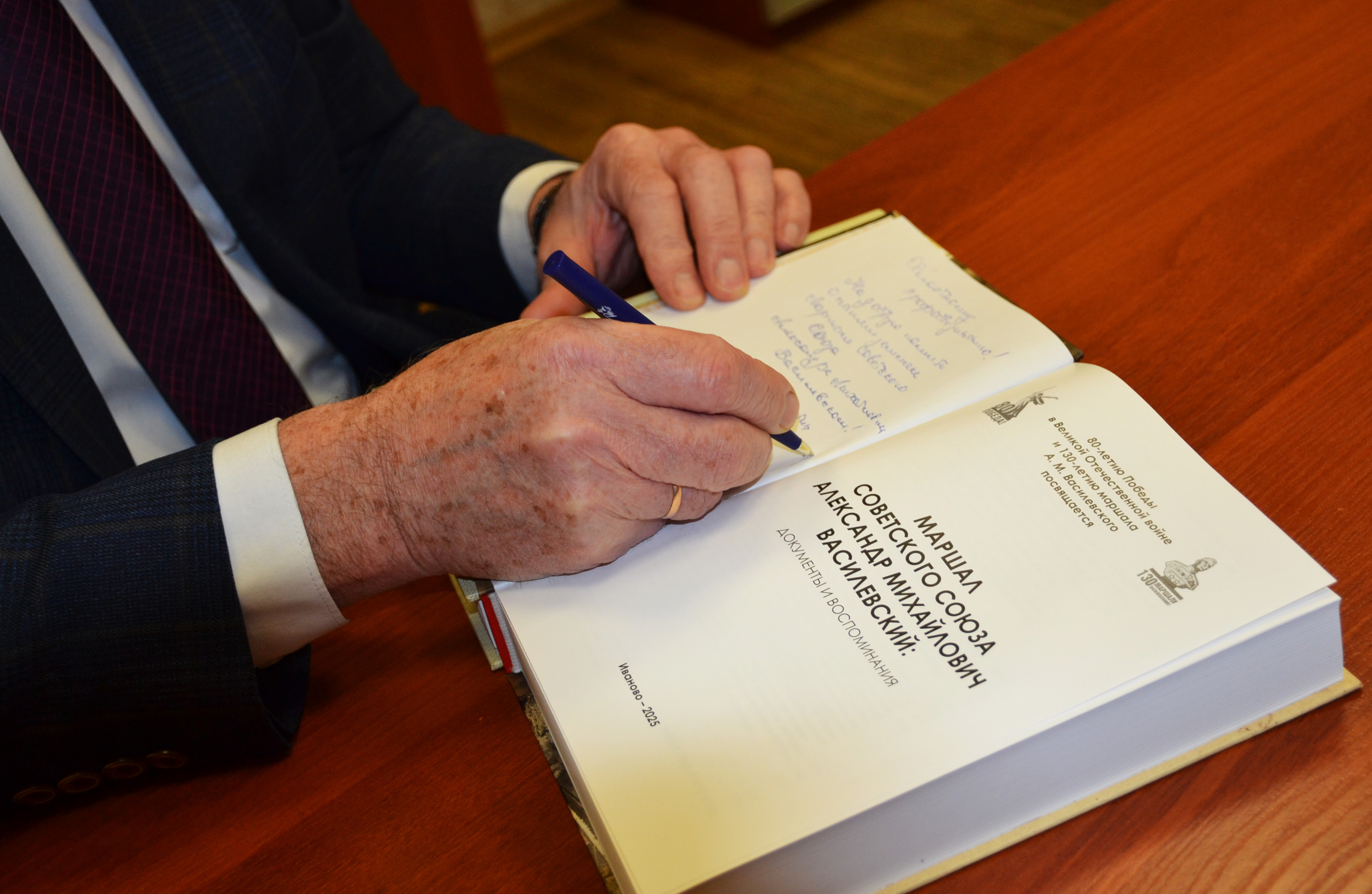 В этот раз автор передал недавно изданные труды «Маршал А.В. Василевский. Документы и воспоминания» и «Народный комиссариат текстильной промышленности СССР в 1943-1945 г.г.». Книга о текстильной промышленности – продолжение темы, презентация предыдущей части прошла весной 2024 года.