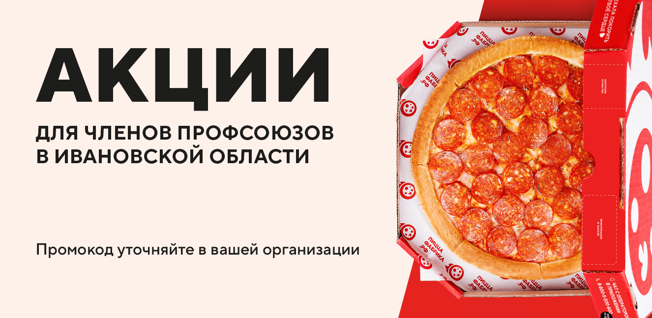 Владельцам профсоюзных дисконтных карт «Профсоюзный плюс» предоставляется скидка в размере 15% на все меню, а так же скидка в размере 20% при оформлении заказа на две средние или две большие пиццы в ресторанах «ПиццаФабрика», расположенных по адресу: